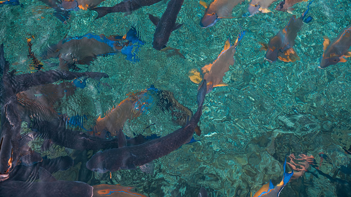 ハシントさんによれば、〈レインボー・リーフ〉の魚の繁殖力が高いのは、注意深く生態系の調和をたもってきたスタッフの努力の賜物だ。ハワイ沿岸の環境を模して、肉食種はほとんど入れず、魚の大半を草食種にするなど魚種のバランスに気をつけていることも、魚たちの健康と繁殖力の維持に大きく貢献している。